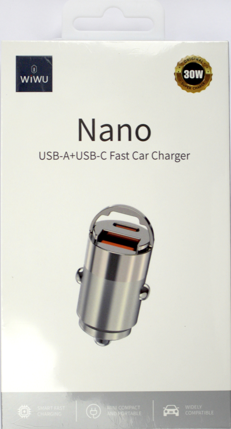 Зарядний пристрій авто Wiwu №Wi-QC028 30W швидка зарядка silver/Breidon/