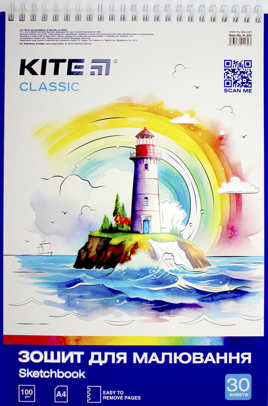 Вертикальний зошит для малювання Kite в картонній обкладинці. Виріб представлено в ущільненій кольоровій обкладинці в 4 дизайнах. Складається з 30 білих ущільнених (100 г/м2) аркушів формату А4. Зошит виконаний на подвійній металевій спіралі. При бажанні подарувати свій шедевр, дитина з легкістю зможе дістати аркуш, не пошкодивши обкладинку. Ефект на обкладинці:софт тач + УФ лак
