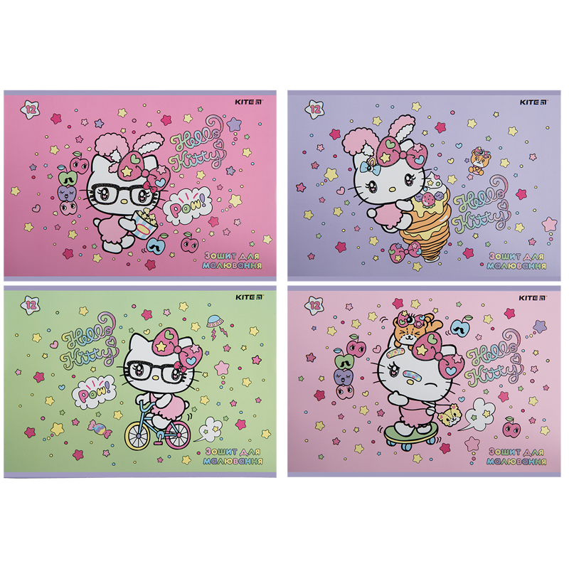 Зошит для малюв. на скобі 12/100 А4 "Hello Kitty" Уф лак+глітер №HK23-241/Kite/(20)(160)