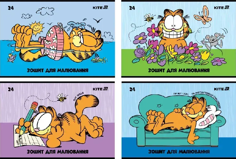 Зошит для малюв. на скобі 24/100 А4 "Garfield" софт тач + УФ лак №GF25-242/Kite/(12)(96)