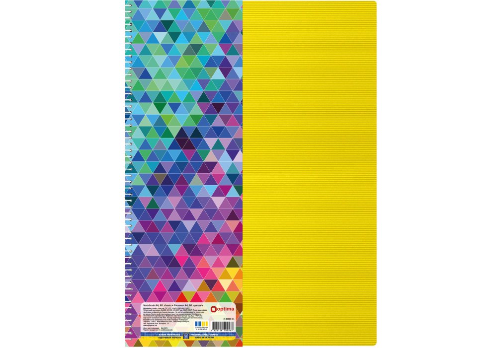Зошит пруж. бок. А4 80арк. кліт. карт. "Optima" Kaleidoscope жовтий №O20365-04(1)(36)